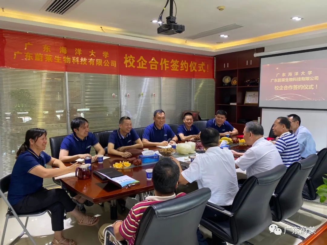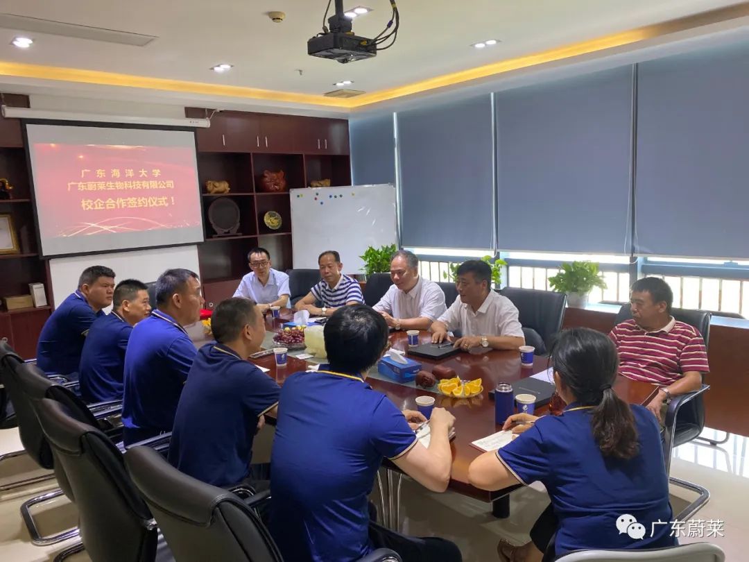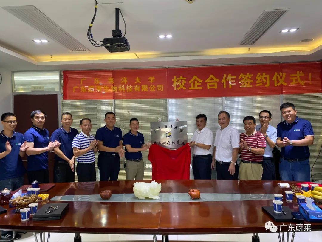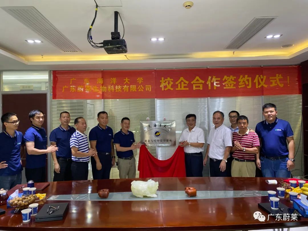 2020年7月27日,廣東海洋大學(xué)濱海農(nóng)業(yè)學(xué)院黨委書記鄧偉強(qiáng),院長(zhǎng)陳進(jìn)軍,黨委副書記陳嘉文以及劉素青教授、翟周老師一行5人到我司出席校企合作簽約儀式暨“產(chǎn)學(xué)研合作基地”與“就業(yè)與校外實(shí)習(xí)基地”揭牌儀式。