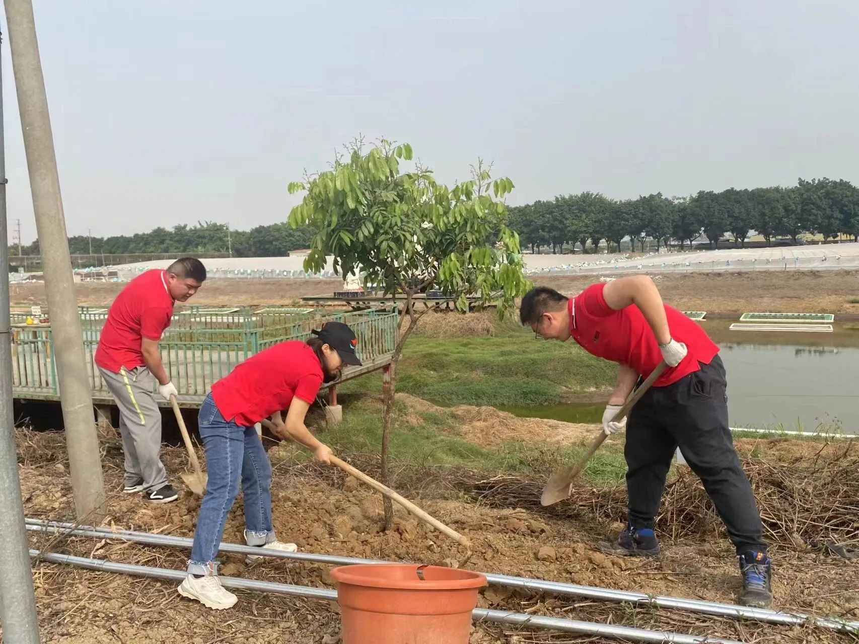在活動(dòng)的整個(gè)過(guò)程中,大家熱情洋溢,干勁十足,相互配合,緊湊有序,伴隨著歡聲笑語(yǔ),一顆顆果樹(shù)苗拔地而起。